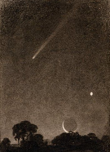 1. Il giorno 2 giugno del 1858 fu trovata in cielo una cometa, che rimase visibile dagli orizzonti terrestri fino al primo marzo del 1859 (Cometa Donati). Durante la sua lunga apparizione prese aspetti diversi. Dapprincipio fu bianca, tonda, piccola, a contorno irregolare, telescopica ossia visibile solo ad occhi armati di cannocchiale. Verso la fine dell’agosto divenne visibile ad occhio nudo, e la forma sua fu quella di un disco circolare risultante di due parti ben distinte, l’una centrale, lucentissima (nucleo), l’altra (chioma) tenue, diffusa, pallida, svolgentesi come aureola attorno alla prima. Nei primi giorni di settembre, la chioma cessò d’essere simmetrica attorno al nucleo, prese ad estendersi nella direzione opposta al Sole, e a formare lungh’essa una striscia nebbiosa, diffusa, tenue (coda) il cui splendore, sempre più debole a distanze crescenti dal nucleo, finiva per perdersi nella luce generale del cielo.